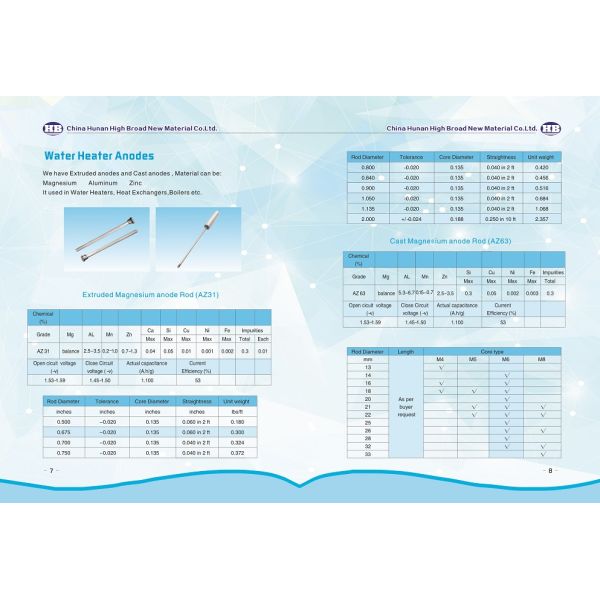 Name : Cast magnesium anode rod for heater treater AZ63C